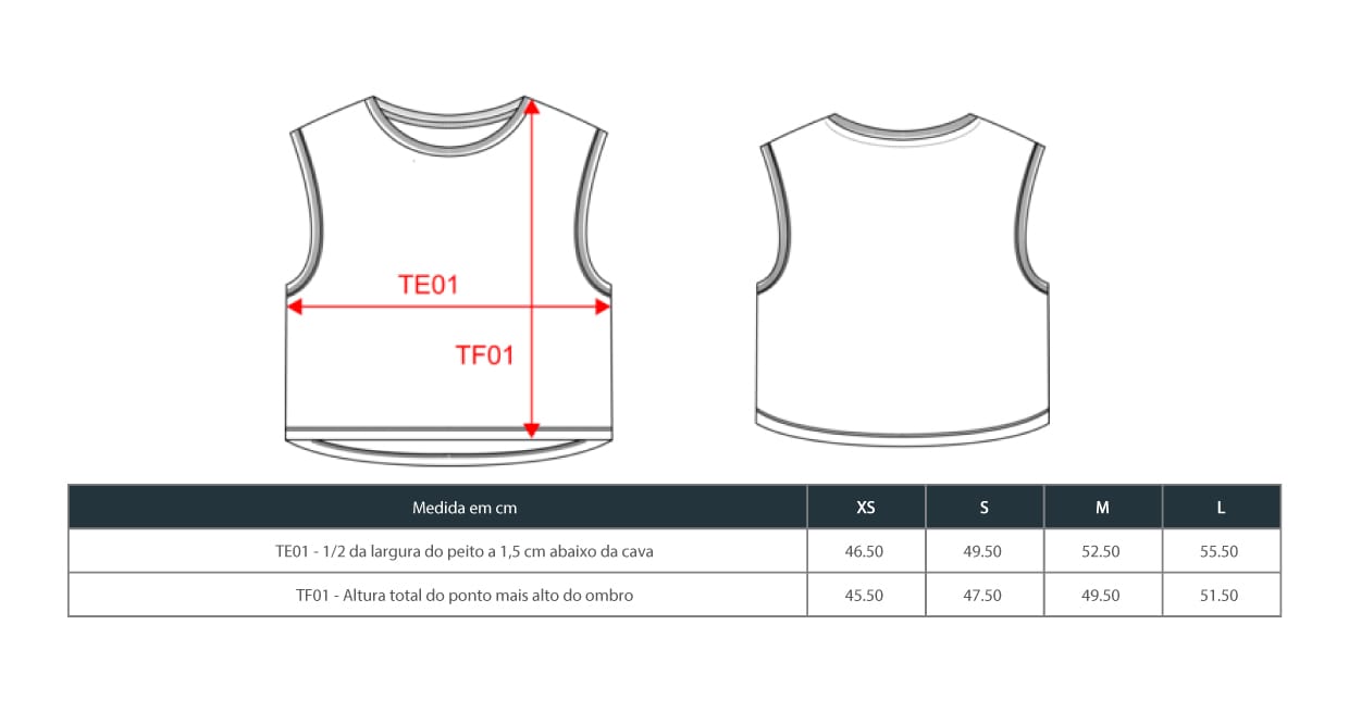 Crop top mulher 100% algodão biológico. Corte relax. Costuras laterais. Banho de enzimas. Decote e cavas em malha rib 1 x 1. Tapa-costuras no interior do decote no material principal. Acabamento em flatlock no cós e nas cavas. Peça tingida após confecção: as cores podem variar ligeiramente.